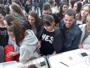 Европска ноћ истраживача, тринаеста по реду, је догађај посвећен популаризацији науке и учењу кроз забаву. У Крагујевцу је организована на платоу испред Прве крагујевачке гимназије. Ученици наше школе су могли да на многобројним поставкама погледају и учествују у занимљивим огледима из физике (секције Примењене физике и електронике Прве крагујевачке гимназије), затим у шаховском времеплову, у археолошкој играоници, иконографији кроз векове, заниматици… Такође су могли да на биолошком штанду посматрају и чују о разноврсности биљног и животињског света кроз аспект културног наслеђа. Они који воле хемију, могли су да погледају експерименте и природно и културно наслеђе хемије, као и посебно пројекат студената ПМФ “Зелена кућа”, који је и једна од тема на Изборном пакету Примењене науке за ученике првог разреда.