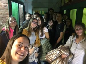 Након едукативног дела, наша група је у пратњи проф. физике Немање Момчиловића, посетила Прву крагујевачку гимназију, импозантну грађевину из 1887. год. Зграда је под заштитом државе као културно историјски споменик од посебног националног значаја.